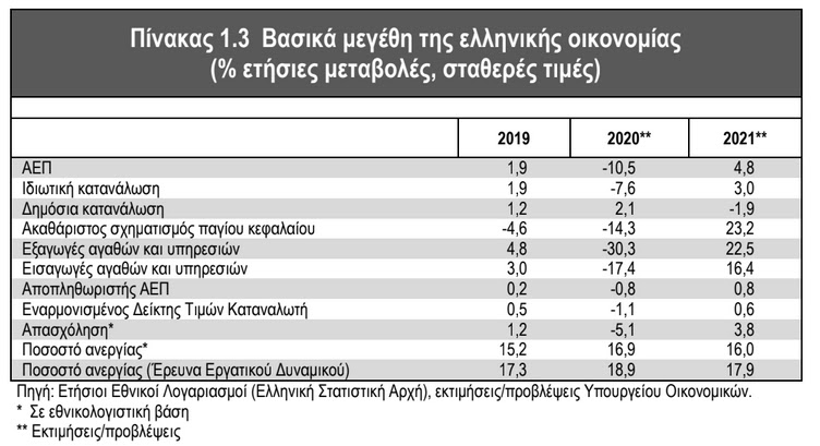 Προϋπολογισμός: Ύφεση 10,5% το 2020 – Αύξηση ΑΕΠ 4,8% το 2021